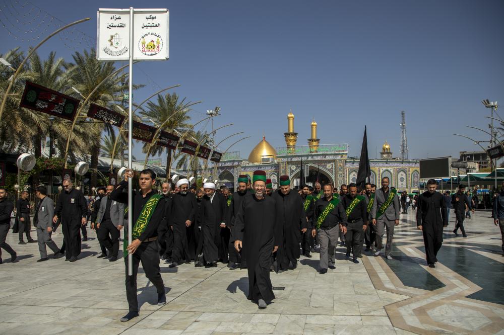 أحيا خدمة العتبتين المقدستين الحسينية والعباسية، الذكرى السنوية لهدم قبور أئمة البقيع (عليهم السلام)، عَبرَ موكب عزاء موحد. وشهد الموكب مشاركة عضوي مجلس إدارة العتبة العباسية المقدسة السيد محمد الأشيقر والسيد كاظم عبادة، إضافةً إلى عدد من مسؤوليها. وقال معاون رئيس قسم مقام الإمام المهدي (عجّل الله فرجه) السيد مهدي الموسوي: إنّ "موكب العزاء الموحّد لخَدَمَة المرقدين الطاهرين للإمام الحسين وأخيه أبي الفضل العبّاس (عليهما السلام)، هو من ضمن الفعّاليّات التي تُقام سنويًّا لإحياء هذه المناسبة الأليمة". وأضاف أنّ "الموكب انطلق من العتبة العباسية المقدسة إلى العتبة الحسينية المقدسة مرورًا بساحة ما بين الحرمين، ليختتم بإقامة مجلس عزاء في الصحن الحسيني الشريف، وبمشاركة الزائرين".